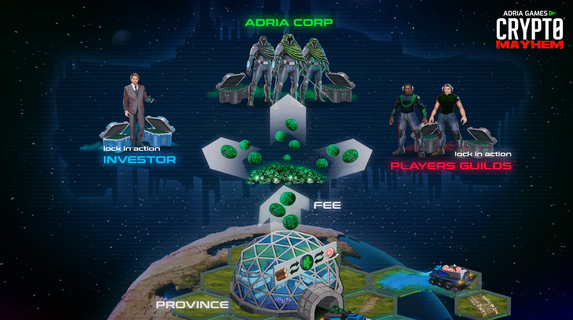 In order to create an efficiently functioning economic organism, a management system for provinces is being introduced. The structures of this system, although originally working under the influence of Adria Corp, can be obtained by the players with the use of ADRIA tokens thus granting them control over the province.