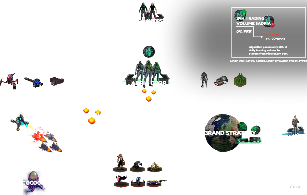 Using the utility of the main $**ADRIA** token, players can make a real affect the value and supply of $ADRIA tokens.